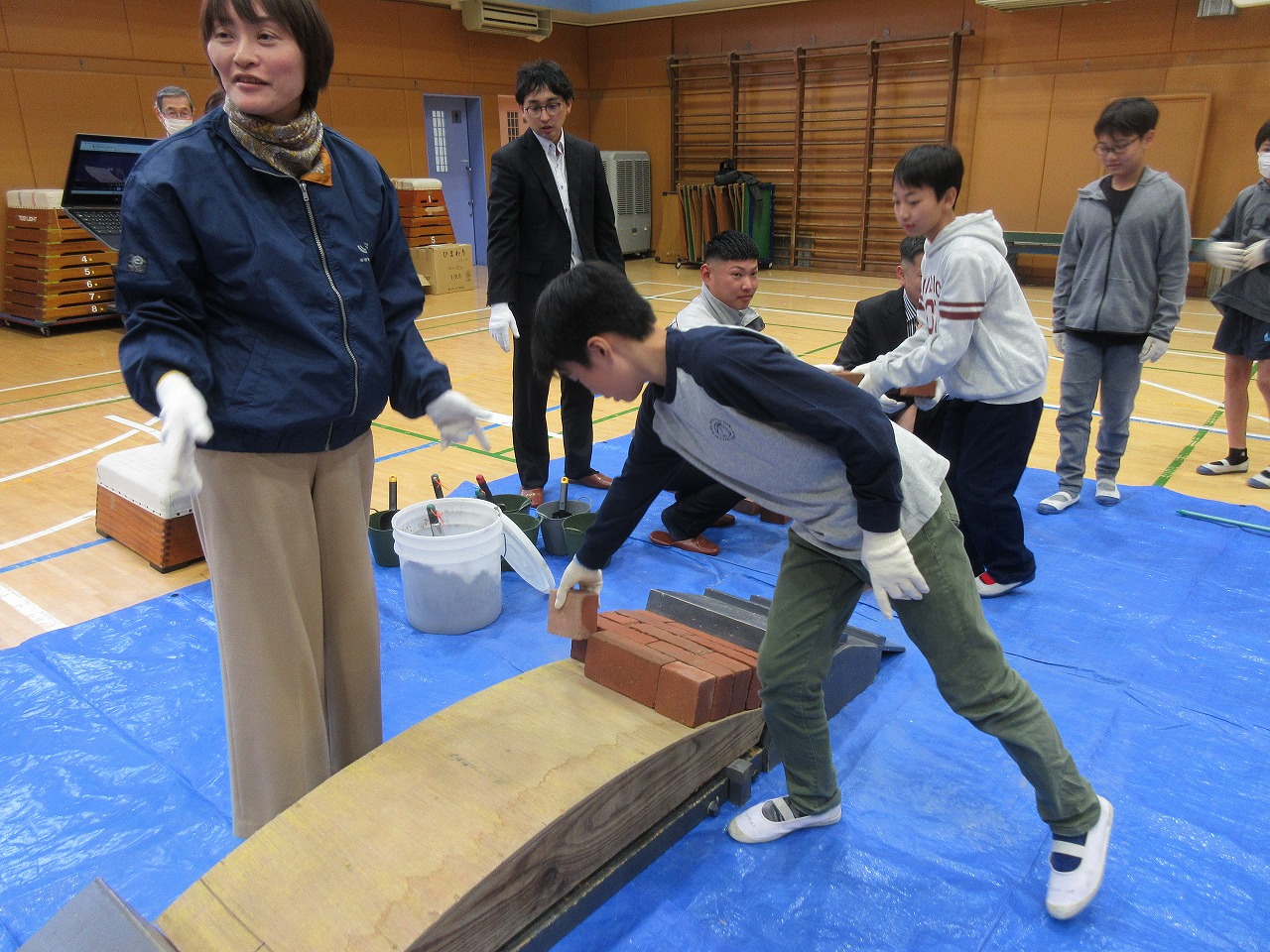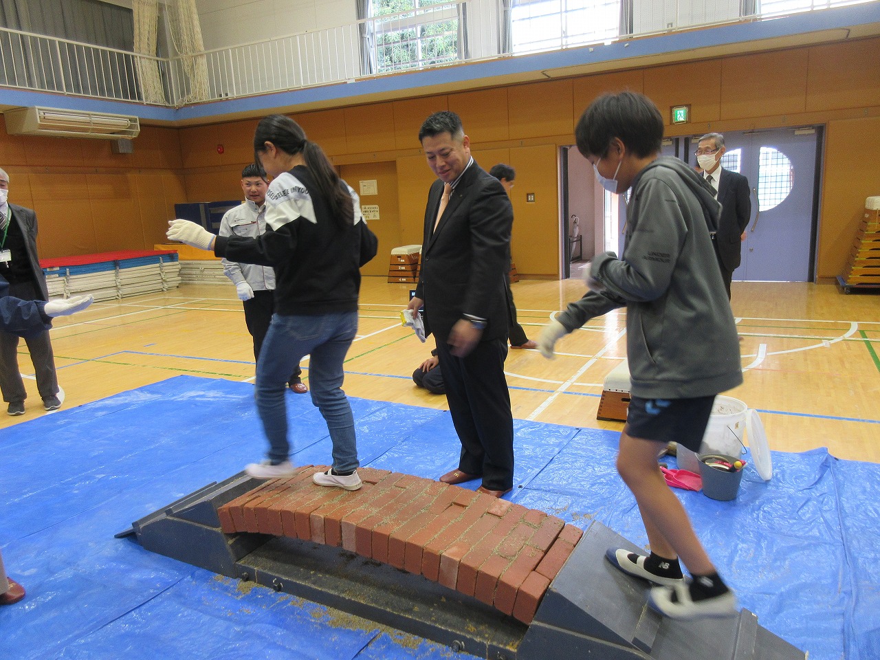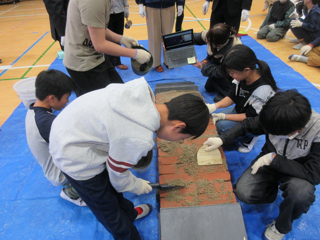 「竹中土木」様のお話は、活動を中心にされていたので、4時間目でしたが、飽きずに聞くことができました。お話の中での「レンガの組み方」には、疑問をもったようで「地震に強いなら、外国も横の置き方でいいはず。外国では縦の置き方が多いということは、縦の置き方にもメリットがあると思う」と考える児童もいました。授業後、その質問にも答えていただき、児童にとって大きな学びになったことと思います。