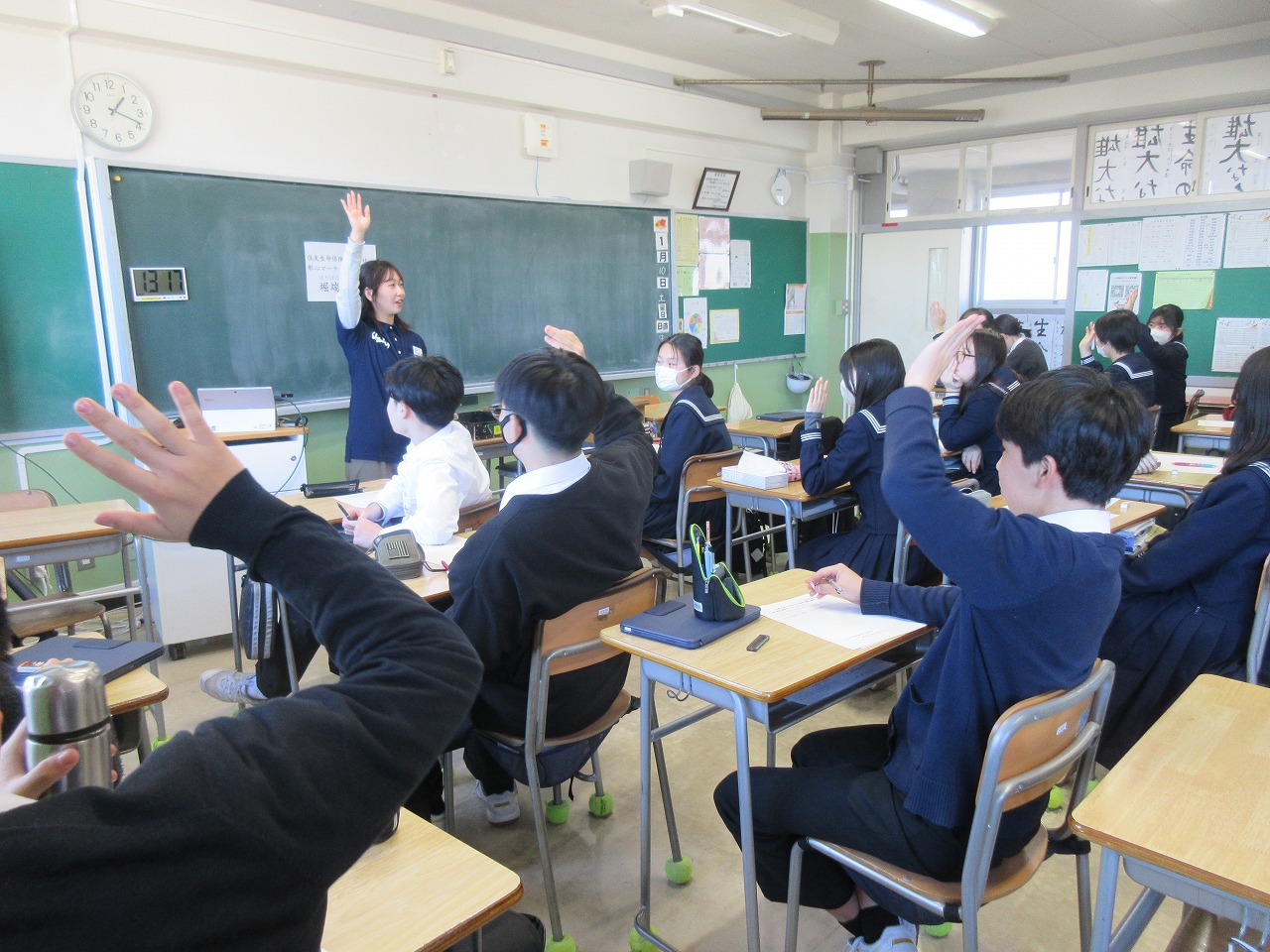○保健会社の名前は知っていても、実際にどのような仕組みになっているのか、また、会社の取り組みについて知らないことが多いので、今回のお話を伺い、生徒たちにとってもわかりやすく知ることができてよかったです。一日に動くお金の話、SDGsへの取り組みなどとても興味深い話でした。生徒にとって将来の夢や夢の見つけ方のヒントとなるお話をしていただき、生徒の将来の職業をより深く考えるきっかけとなったと思います。ありがとうございました。