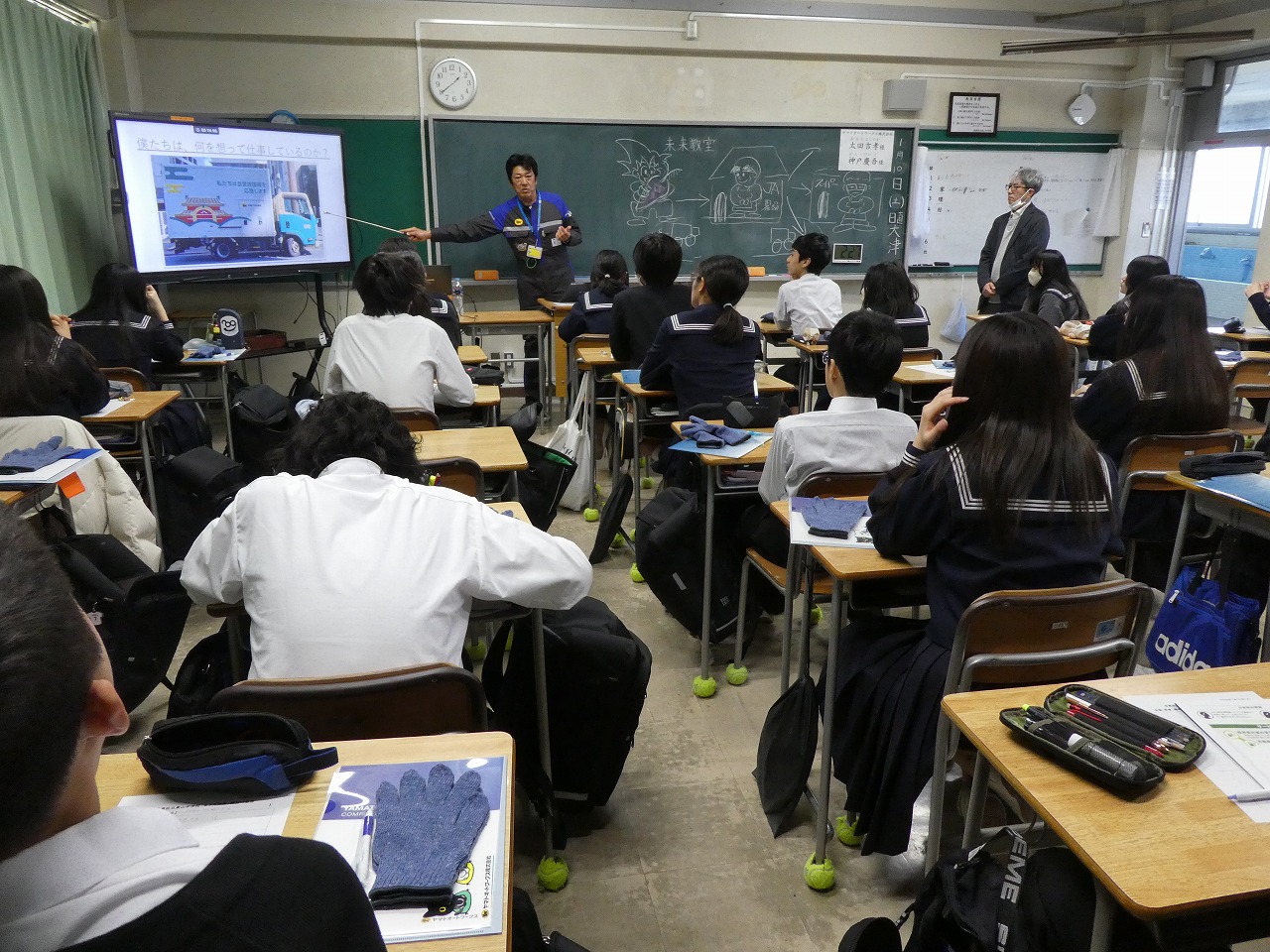 生徒たちは、普段何気なく利用している宅配便の裏側にある、様々な工夫や努力を知ることができ、大変貴重な学びの機会となりました。また、仕事に対する「好き」や、チームで協力することの大切さ、働くことの意義についても分かりやすくお話しいただき、これから進路を考えていく生徒たちにとって、かけがえのない経験となったと思います。生徒たちが自分の将来について前向きに考えるきっかけをいただいたことを実感しております。