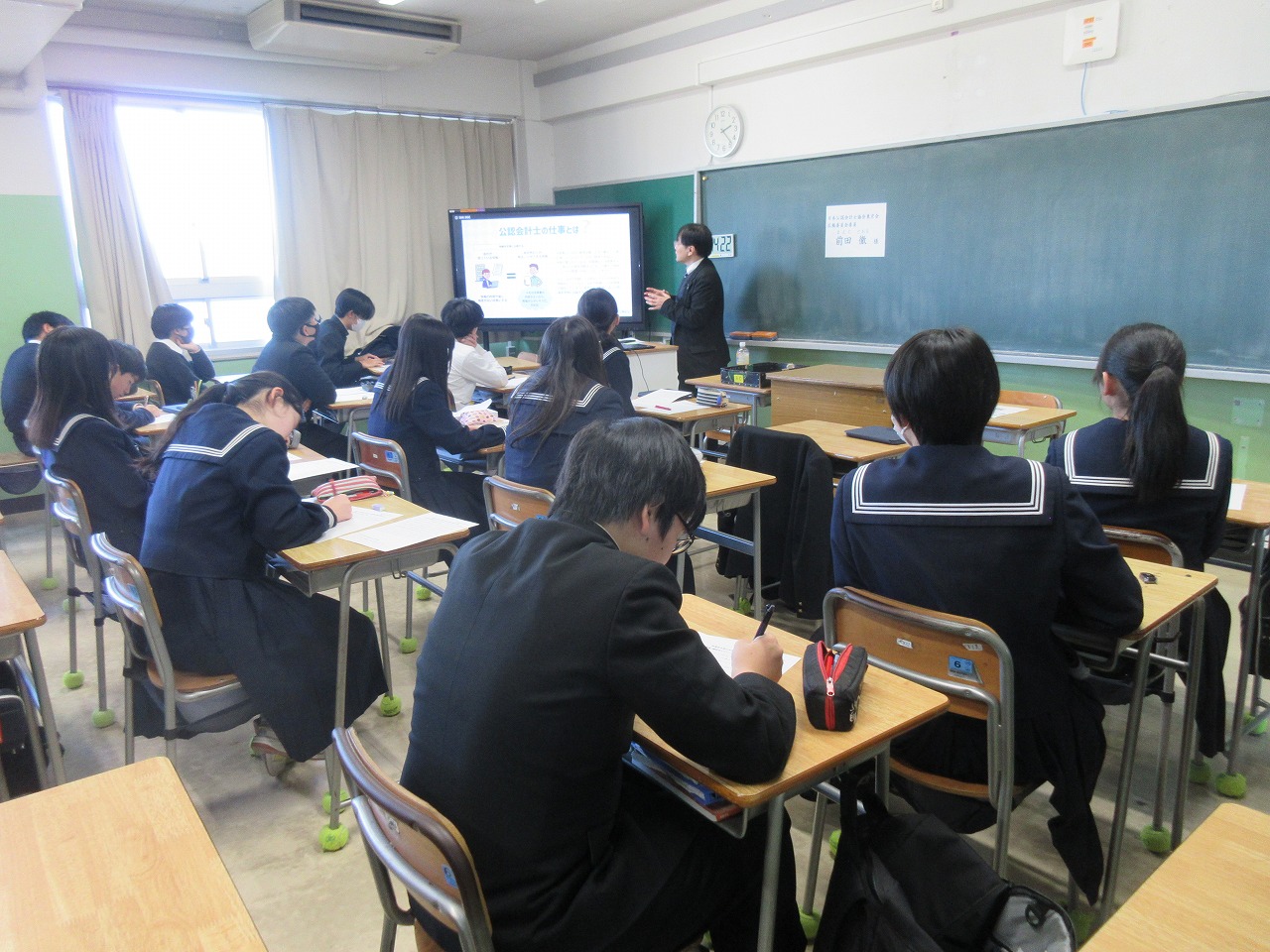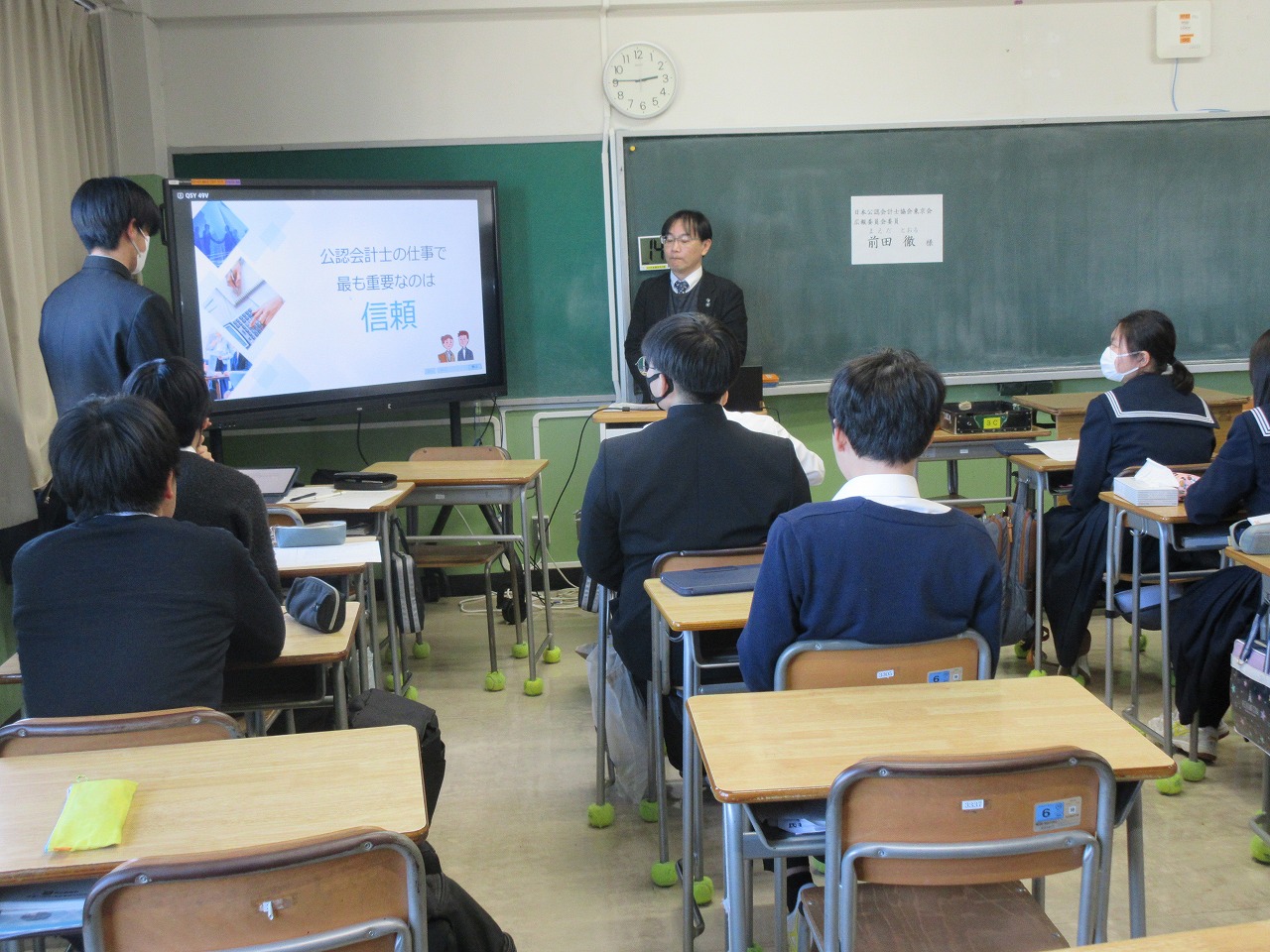○公認会計士という職業が実際にどんな仕事をするのか、社会の中での役割について深く知ることができ、大変勉強になりました。世の中でよく聞く粉飾決済やインサイダー取引など、言葉は知っていてもその問題と公認会計士のかたがどう関わっているのかまでは知らず、学ぶことがたくさんありました。生徒にとってもわかりやすく話をしてくださり、進路選択において大変参考になったと思います。ありがとうございました。