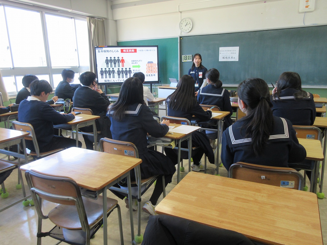 ○貴重なお話をありがとうございました。生徒には、中々馴染みのない生命保険のお話でしたが、終始明るくお話しくださったため、45分間飽きずに生徒と共に参加することができました。ぜひ来年も堀端さんにご来校いただき、貴重なお話を生徒にしていただけると幸いです。よろしくお願いします。